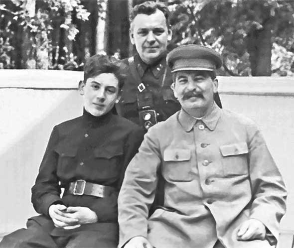 И. В. Сталин с сыном Василием и Н. С. Власик