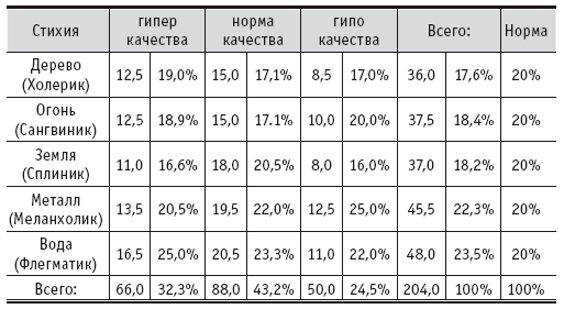 Общее количество баллов принимается за 100%. Идеально сбалансированная Личность будет состоять из всех пяти стихий:
