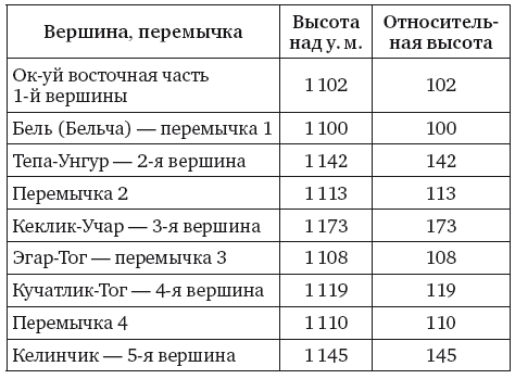 Отдельные вершины горы и их участки имеют самостоятельные названия. Так, первую вершину за двугорбость иногда называют «Буура-Тог» – «Верблюд-гора». Восточная часть ее носит название Ок, уй, что означает в переводе с узбекского языка «Белый дом», где «ок,» может употребляться в смысле «незапятнанный», то есть «святой». В конце ХV в. здесь, на уступе скалы, стояла худжра дяди Бабура – Султан Махмуд-хана, построенная над лунками, почитаемыми как «следы» святого (арабо-персидск. – «кадамджай»). В XIX веке худжра была объявлена «мечетью Сулеймана». По мере разрушения она неоднократно реставрировалось, но в 60-е годы была снесена до основания. В 1989 году мечеть построена вновь. Поскольку это строение небольших размеров, его часто именуют «домиком», иногда «домиком Бабура».