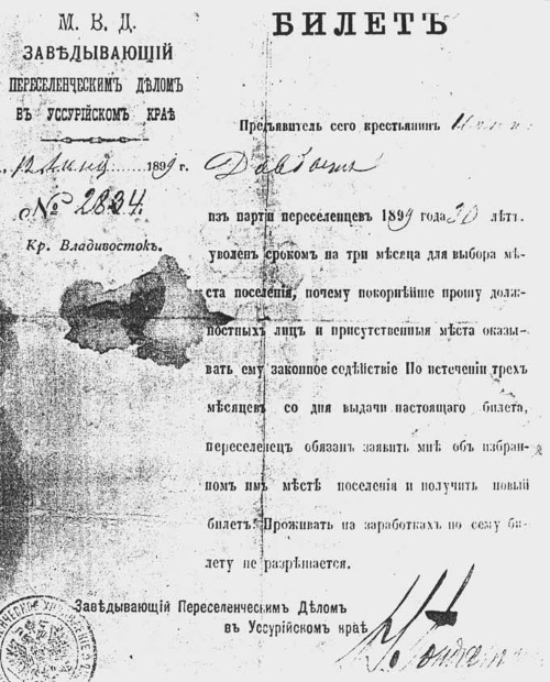 «Чтобы устроиться на Дальнем Востоке, надо привезти с собой не менее 400–500 рублей на семью. С этими средствами при правительственной ссуде – до 200 рублей на семью – сильная семья на подходящем земельном участке безусловно окрепнет, и хорошая будущность для неё обеспечена.