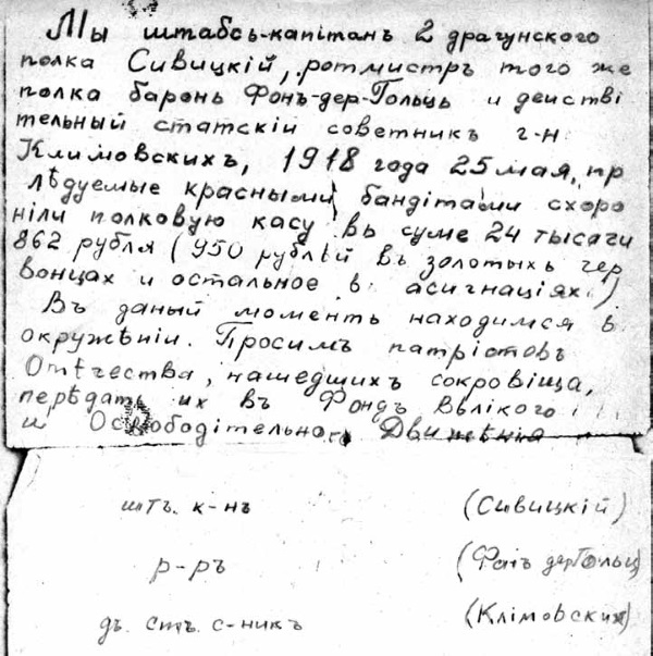 Записка из бутылки, найденной осенью 1986 года, посёлка Мысовой Шкотовского района. Из фондов ИГОМ
