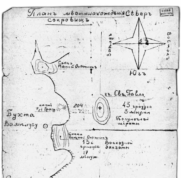 Карта из бутылки, найденной осенью 1986 года у посёлка Мысовой Шкотовского района. Из фондов ИГОМ