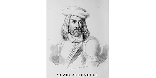 Муцио Аттендоло по прозвищу Сфорца, ставшему фамилией его потомков, умер непобеждённым. Он утонул 4 января 1424 г., переправляясь в тяжёлых доспехах через полноводную реку Пескару, спасая своего оруженосца. В нём воплотились лучшие качества кондотьеров. Его безупречная линия в жизни – пример для подражания его наследниками.