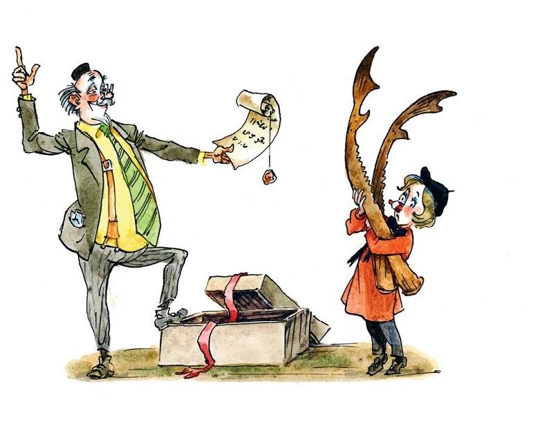 Профессор Пыхтелкин пулей выскочил из комнаты и, спотыкаясь, побежал в библиотеку. Учёному не терпелось вспомнить, где же ему встречались удивительные рога.