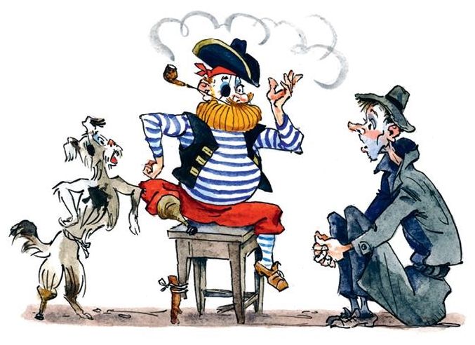 – Да так! – разозлился рыжий пират. – Полиция после ограбления спросит свидетелей, какие особые приметы они заметили у грабителей. А свидетели и укажут на твою особую примету.