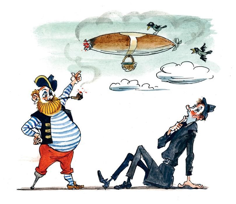 – У меня есть план получше, – признался капитан Буль-Буль. – Хватит нам уже по морям и океанам плавать. Пора подниматься в воздух и там разбойничать, – предложил он. – Будем летать по небу!