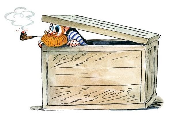 – Хорошо бы где-то спрятаться, – озираясь, заметил шпион Дырка. – Ага, вон там стоит какой-то ящик. Давайте заберёмся в него и тихо-тихо отсидимся там до утра.