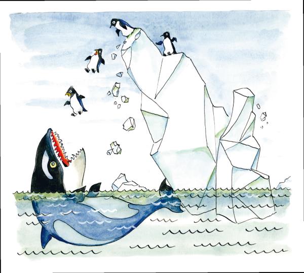 За обедом Прутик с Чижиком заспорили, кто из морских обитателей самый опасный. Прутик утверждал, что акулы, а Чижик был уверен, что в морской воде опаснее всех косатки, которых даже прозвали китами-убийцами.