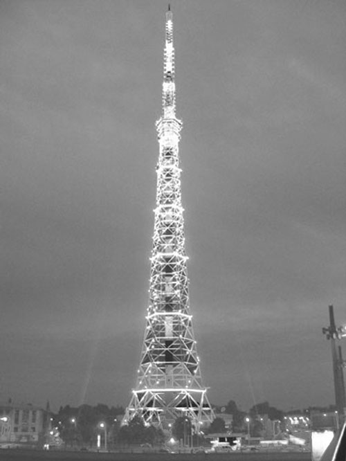 На этом участке в 1956–1962 гг. построили телевизионную башню высотой 316 м 27 см и весом – 1263 т. Она на 4 метра выше, но в 7 раз легче Эйфелевой башни. Это самое высокое сооружение города. Ее авторы – архитекторы С.Б. Сперанский, В.С. Васильковский и А.Д. Кац. Фундаментом являются семь правильных шестигранных пирамид. Башня скреплена девятью жесткими площадками.