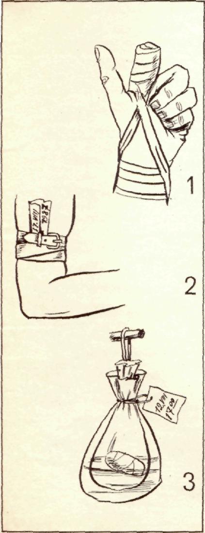 Отсечение конечности не очень распространённая травма из всех видов повреждений конечностей, однако, её последствия для пострадавшего весьма катастрофичны. Он на всю жизнь остаётся инвалидом, А это, к сожалению, весьма часто происходит в рассвете сил, в наиболее трудоспособном возрасте. В основном травма происходит у людей в возрасте 20–50 лет. Необходимо отметить, что получение увечья результат нарушения ими на производстве или в быту элементарных правил техники безопасности. Зачастую, выполняя определённый вид работ, они пренебрегают этими правилами и работают рядом с движущими механизмами или режущим инструментом без подстраховки. А бывает и в нетрезвом состоянии. В настоящее время развитие медицины позволяет произвести приживление ампутированной конечности. Однако это в большинстве случаев зависит от своевременно и умело оказанной первой помощи пострадавшему. Первой задачей при оказании помощи является остановка кровотечения. Для этого надо наложить на место отсечения конечности тугую повязку (рис. 1). Для этой цели можно использовать бинт, чистый носовой платок, косынку, полотенце или другой кусок имеющейся в наличии чистой ткани. Для повреждённой конечности необходимо создать удобное и возвышенное положение. В случае очень сильного кровотечения, надо наложить выше раны жгут (рис. 2). В случае отсутствия стандартного жгута – можно использовать туго свёрнутую косынку, галстук, платок или ремень от пояса. Но обязательно, наложив жгут, поместите под него записку с указанием точного времени его наложения. Так как держать его в затянутом положении нельзя более двух часов. С целью успешного проведения операции по приживлению отсечённой конечности необходимо осуществить правильные действия по её сохранению. Для этого осечённую конечность необходимо завернуть в кусочек чистой ткани и поместить в полиэтиленовый пакет, туго его после этого завязав. Затем этот пакет надо вложить в другой пакет с кусочками льда, снега или холодной водой (рис. 3). Эти мероприятия препятствуют проникновению инфекции к отсечённой конечности. Категорически нельзя уложить оторванную стопу, палец или кисть прямо на лёд, снег или в морозильник холодильника. Нельзя также промывать его растворами спирта, щёлочи или кислоты. Держать пакет с отсечённой конечностью требуется в подвешенном состоянии. После проведения всех возможных мероприятий по оказанию первой помощи, пострадавшего в кратчайшие сроки надо доставить в больницу. Где будут проведены конкретные действия против развития травматического шока и операция по приживлению отсечённой конечности.
