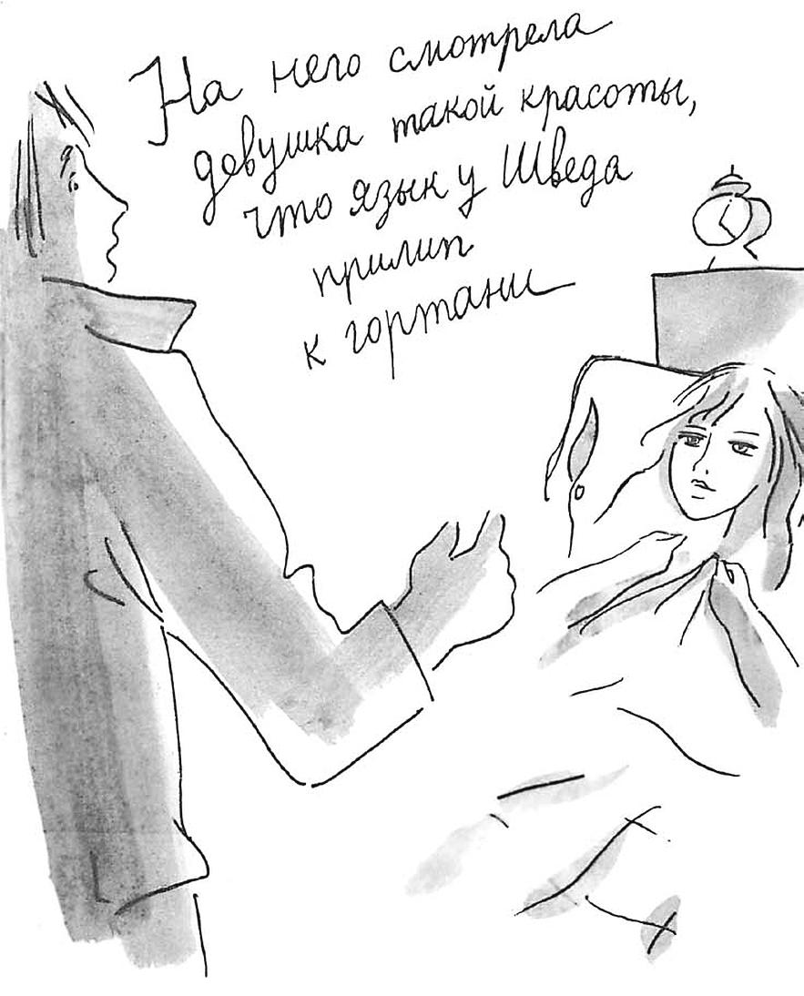 – Вы кто? – строго спросила девушка и ещё выше натянула одеяло на грудь, причём Швед, совершенно машинально, заметил, что нога её, маленькая и узкая нога, снова появилась из-под одеяла и исчезла.