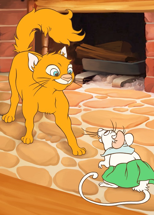– Нет, я больше не могу терпеть! Это просто чудовище! Беги, внученька, быстрее на улицу и принеси котёнка, который сидит на приступке. Иначе мы ничем не спасёмся от этой мыши.