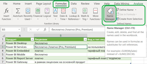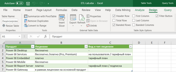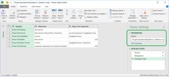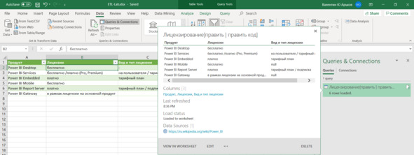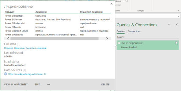 Задание. Загрузите в Excel таблицу «Лицензирование» из статьи «Power BI» на сайте Википедии и ознакомьтесь с результатами.