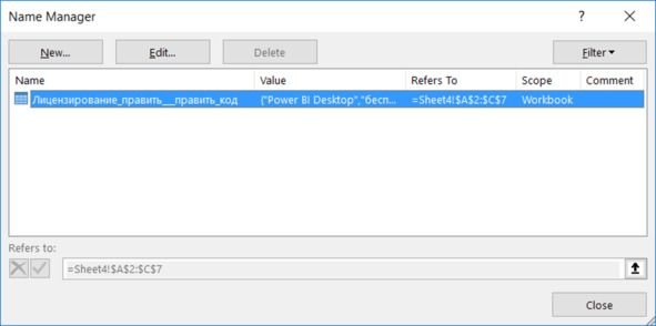 В графе Refers To указан лист рабочей книги Excel и диапазон ячеек, в который была загружена наша таблица.