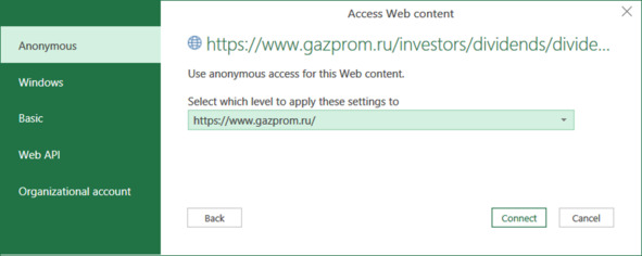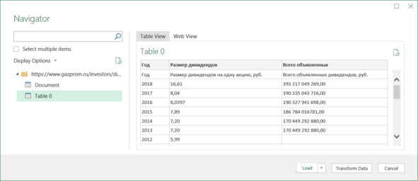 Один из стандартных источников данных —это интернет. Из интернет-страницы можно извлечь и загрузить выбранную таблицу.