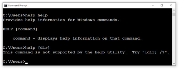 Команда help выводит на экран описание указанной команды. Например, чтобы изучить команду dir, нужно ввести команду: