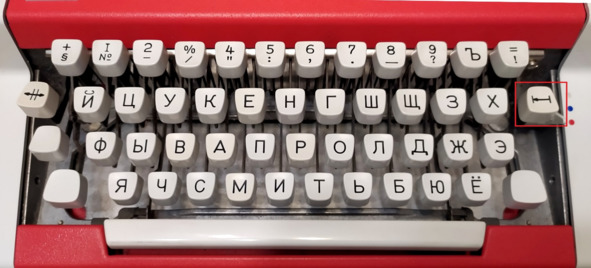 Английское слово backspace означает «вернуться на одну позицию назад». Эта клавиша была ещё на печатных машинках, см. рис. Тогда она просто передвигала печатающую головку на один символ влево. Русское название – «Забой». Можно было вернуться и напечатать другую букву поверх первой – если надо было исправить ошибку – то есть «забить» одну букву другой, перепечатать символ. А теперь на компьютере это ещё и стирание символа слева от курсора – с той же целью – исправить опечатку.