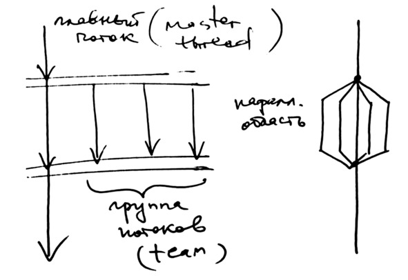 Master thread – Главный поток – поток, который существует на протяжении всего времени выполнения процесса и который создаёт группу параллельных потоков (Team) при входе в параллельную область.