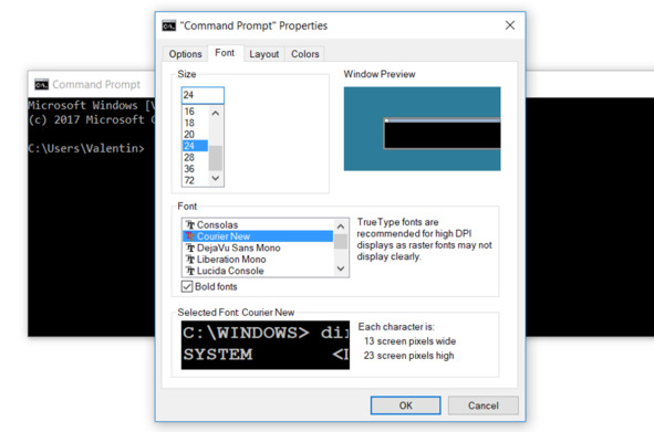 Задание. Убедитесь, что настроили шрифт командного окна.
