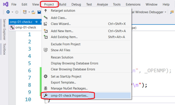 Теперь включим поддержку распараллеливания. Настроим свойства текущего проекта: