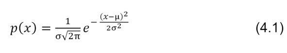 Вначале рассмотрим форму нормального распределения. Мы будем использовать функцию плотности вероятности р (х). Нормальное распределение в общем виде описывается уравнением (4.1).