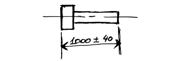 Инженер-конструктор продумывает КОНСТРУКЦИЮ и рисует чертёж. На чертеже он указывает НОМИНАЛЬНЫЙ РАЗМЕР – заданное значение размера. Кроме этого, конструктор задаёт ДОПУСК, указывая предельное (максимальное ДОПУСТИМОЕ) отклонение от номинального размера. Поэтому на чертеже можно встретить надпись типа 1000±40. Если не указаны единицы измерения, то скорее всего это миллиметры. Пример чертежа с указанием номинального размера и допуска приводится на рис. 5.1.