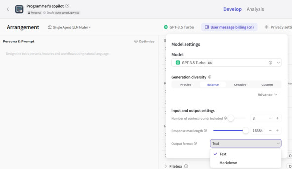В разделе Persona & Prompt мы описываем общий запрос. И это будет System prompt. Есть запрос пользователя, а есть системный запрос. Уточните в любом чат-боте, что такое System prompt и как этим пользоваться. В двух словах, этот промпт будет всегда незаметно добавляться к запросу пользователя. И здесь мы можем описать все общие элементы наших запросов. Или можем задать любые ограничения, например: «в своих ответах говори намёками, чтобы пользователю пришлось подумать самому».