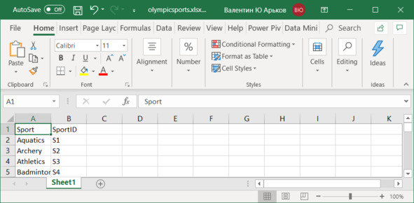Судя по содержимому файла, здесь тоже содержатся данные по олимпийским видам спорта (рис. 3.1).