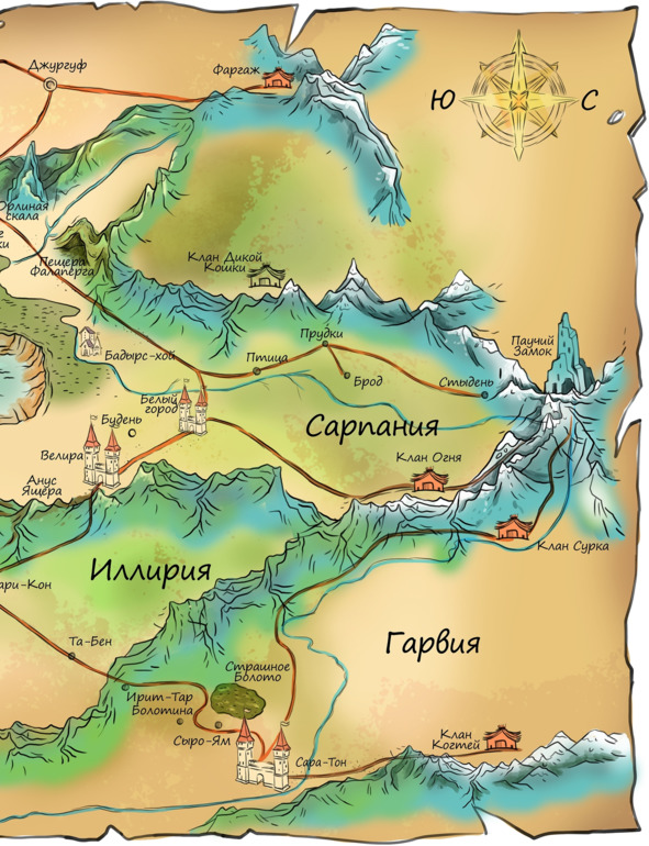 Вся местность была мне знакома, как стилизованная новогодняя открытка из детства. Группа маленьких домиков напоминала пионерлагерь или турбазу на Кавказе, которых я с отцом вдоволь насмотрелся на Земле, ощущение домашнего уюта пересиливало даже мрачный вид свежей каменной могилы. Озеро внизу тоже было родным и немного нереальным из-за своей контрастности и чистоты, как на картинках в компьютере. А принц постоянно смешно дёргал головой, забывая, что над ним висит не опасность, а, наоборот, защитная крыша леса.