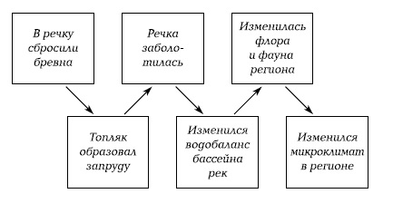 Начинать освоение причинно-следственного моделирования легче с построения цепи событий. Например: