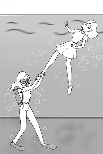 Достигнув дна, оттолкнуться и всплыть вверх за новой порцией воздуха. Так, погружаясь и всплывая поплавком, бойцы могут держаться в воде часами.