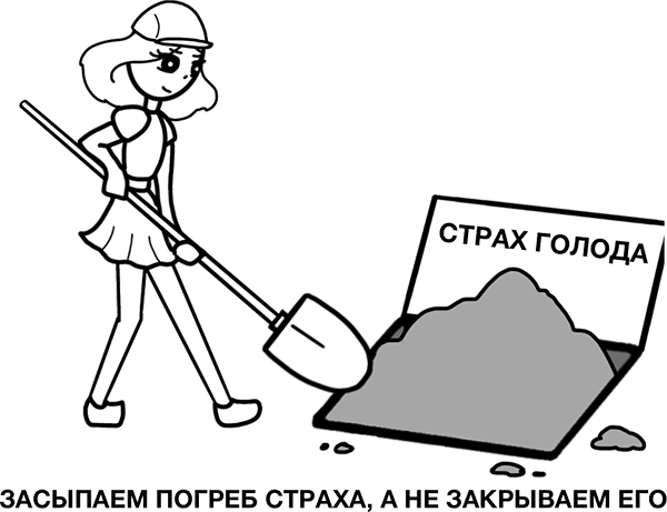 Хорошо, теперь движемся дальше. Очень важно понять не только как ты упала в этот погреб, но и как ты из него выбралась. Важны обе кнопки: «включить страх» и «выключить страх». Если их обе хорошо разглядеть, то тебе самой будет ясно, что в следующий раз делать, если снова нечаянно упадешь в погреб.