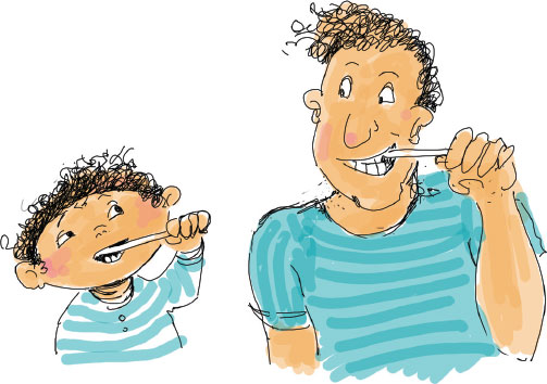 НО САМОЕ ГЛАВНОЕ – ЭТО ВАШ ЛИЧНЫЙ ПРИМЕР!Дети учатся, копируя поведение взрослых. Через год, когда ребенок сможет уверенно держать щетку, он захочет чистить зубы самостоятельно и сам вам будет напоминать о необходимости процедуры после завтрака и перед сном, потому что сформируется потребность. Эта процедура станет своеобразной точкой в утреннем и вечернем ритуале умывания.