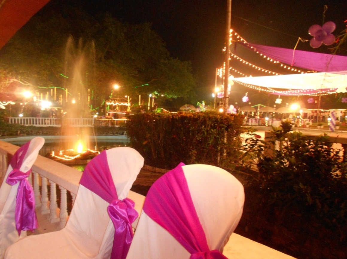 Место проведения свадебного вечера представляло собой большую территорию, обнесённую невысоким заборчиком, с большим искусственным водоёмом с фонтанчиками, крытой площадкой, на которой располагались гости и которая как раз и находилась у этого самого водоёма, а также большая танцевальная площадка. Это всё было первое, что предстало перед нами в самом начале. В целом гоанские свадьбы как раз играются не в банкетных залах, как принято у нас, а на открытых площадках.