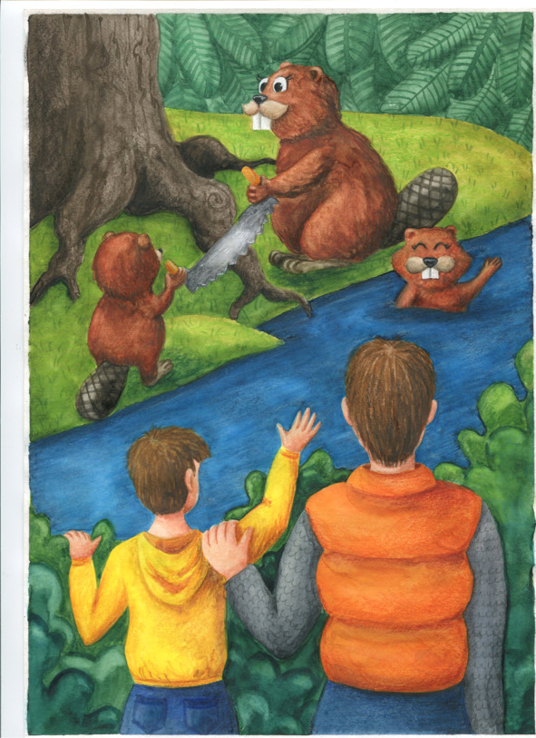 Жили-были бобры. В лесу, на мелкой речке Гуслянке, бобры строили плотину. Мальчик Боря с папой стояли и издалека наблюдали за бобрами. Это была целая семейка. Старшим был папа-бобер. Он был крупный и сильный. Он учил сыновей подпиливать корни небольших деревьев и укладывать их в плотину. Один маленький бобер учился старательно, а второй баловался, нырял и не хотел учиться. «Старайся!» – сказал ему папа-бобер и пообещал дать за обедом вкусный сочный стебель водяной лилии. Когда бобры услышали, что Боря и его папа приближаются, они сразу нырнули под воду. Папа рассказал Боре, что взрослые бобры очень трудолюбивые и человеку есть, чему у них поучиться. Когда они построят плотину, то выше, по речке Гуслянке, они будут строить свой домик из веток и глины, где у каждого бобра будет своя комнатка с постелькой и кладовка с вкусной едой. Плотина укроет семейку от врагов: волка, медведя, росомахи, а вода никогда не затопит их домик. И они будут счастливо и уютно жить-поживать в нем даже зимой.