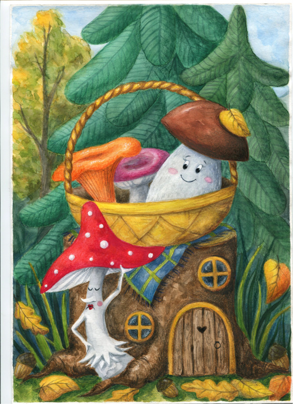 Однажды после дождя на лесной полянке выросли два гриба. Первый гриб – красивая яркая поганка в большой красной шляпе с белыми горошинами. Стояла поганка на высокой белой ножке, а вокруг ножки под шляпой – белая юбочка. Если сорвать красивую поганку, то почувствуешь приятный грибной аромат. Но с ней никто не хотел разговаривать. Люди проходили мимо и даже не здоровались, а иногда сбивали ее ногами. А в другом конце полянки вырос небольшой крепыш белый гриб – всем грибам гриб. Он был скромный, не яркий, но приветливый. Внешность обманчива! Ему все улыбались и брали его с собой. Он лежал в корзинке рядом со своими друзьями лисичками, маслятами, груздями, сыроежками. Жизнь его была коротка, но прекрасна.
