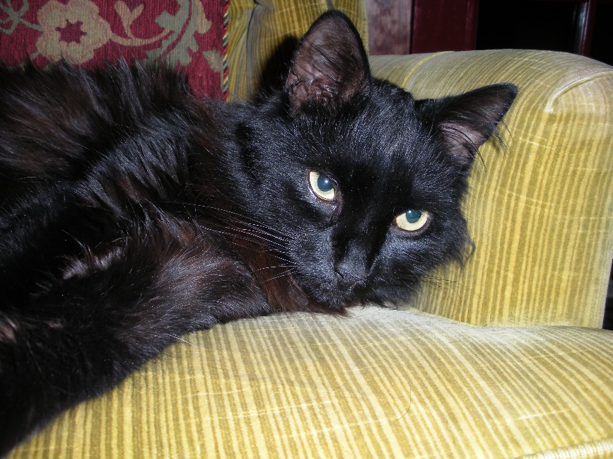 В тот день в магазине скользнула я взглядом по предлагаемому ассортименту, и впервые в жизни сердце моё ёкнуло. К продаже предлагался огромный чёрный кот, хвост дыбом, рожа глумливая, стать королевская… Он меня пленил. Я вообще почти всегда предпочитаю вещи монументальные. Кот и статью не подкачал, в холке был выше трёх метров.