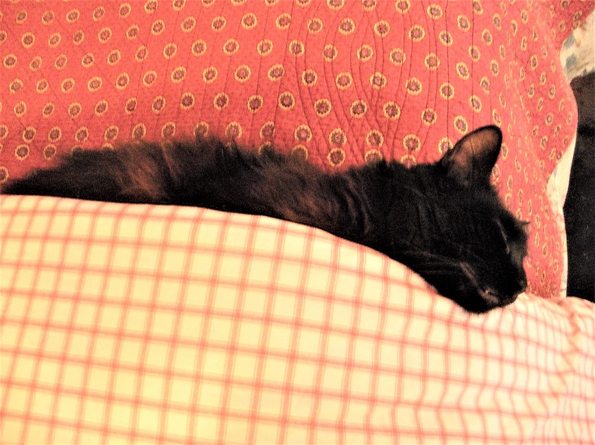 Прискакала домой, приволокла кота. Супруг (характер твёрдый, нордический) виду не подал, но счааастлив был!.. А Мурча позавтракал и пошёл спать на кровать в спальню. Спал как убитый, с кровати не слезал (типа, я тут прописан!), к окнам не ходил, восстанавливал пошатнувшуюся нервную систему.