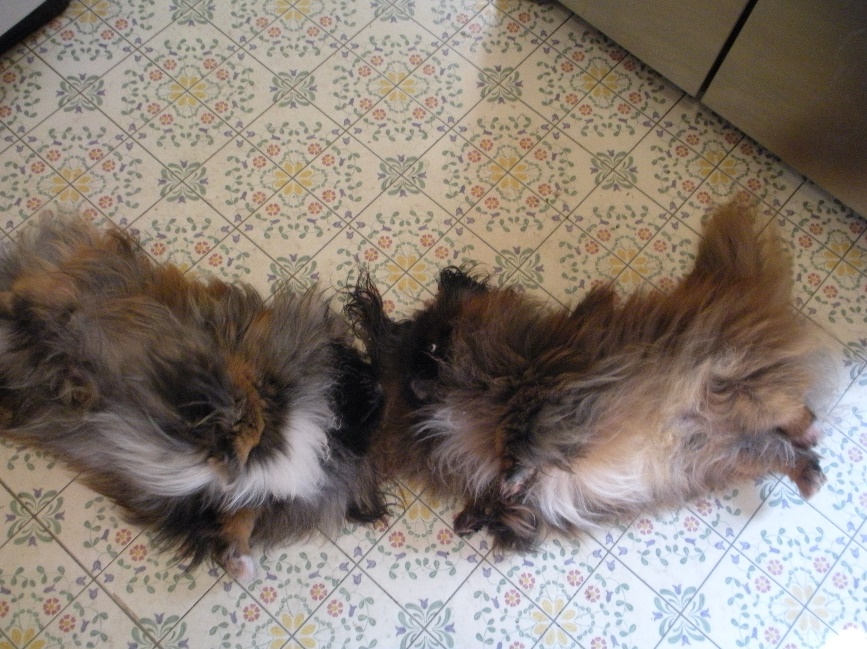 Пекинесы Фокси и его сын Дрейки демонстрируют древнее китайское искусство "Синхронный отдых".