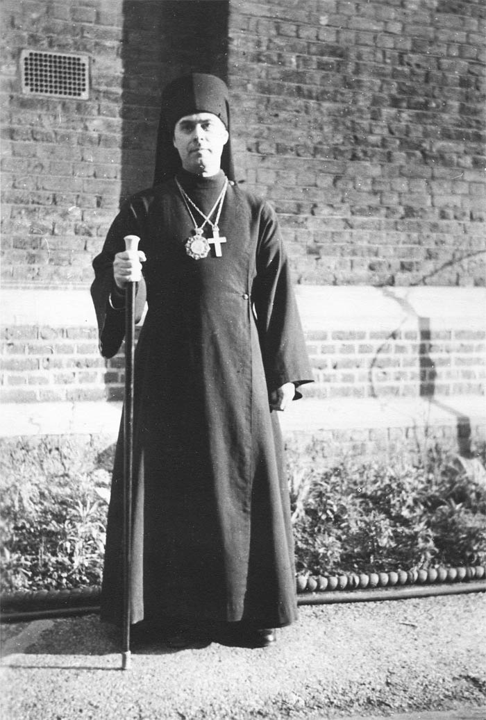 После завершения войны в 1948 году в сане иерея приехал в Англию по приглашению англикано-православного Содружества им. свв. Албания и Сергия капелланом; был назначен «временно» в приход Успения Божией Матери после внезапной смерти его настоятеля. «Когда я приехал сюда, то меня поразило то, что в церковь приходили только бабушки и их внуки, моложе 14 лет. В этом возрасте мальчик или девочка может сказать: «Я не пойду в церковь!» Среднего поколения не было. И я решил сделать все возможное, чтобы и среднее, пропащее поколение, вернулось в церковь. Я понимал, что быть православным – это важнее, чем иметь в себе «русскость». Потому что «русскость» может передаваться только в самом православии. Чтобы вернуть среднее поколение, надо было начать служить и вести проповеди, беседы на английском языке. Эта проблема была более чем сложная.