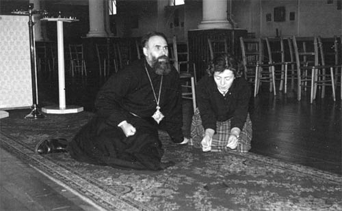 Я прибыл в Англию без знания английского языка вообще. И мой приезд был очень дерзким поступком. Мне предложили стать настоятелем храма, и я согласился на том основании, что если 50 миллионов англичан могут говорить на своем языке, то почему еще один человек не сможет ему научиться? Я рассчитывал, что хорошее знание французского и немецкого языков поможет мне. И я засел за учение. Читал со словарем, слушал, как говорят люди, пробовал всячески произносить те звуки, которые они произносили. Иногда выходило комично, иногда впопад. У меня в приходе оказалось пять-шесть человек, которые не говорили ни по-английски, ни по-русски. Они приехали из Германии. Пришлось служить и по-немецки. Одновременно мы все вместе учили английский. Как только я начал достаточно знать английский, чтобы произносить богослужебные слова, хотя говорить еще не мог, то я стал служить по-английски. Сначала в церковь зашел один человек, потом стали прибиваться другие. Затем мы открыли школу для детей с русским языком. И эти дети вернули нам своих родителей. Вот с чего началось. К сожалению, после третьего поколения русский язык делается пассивным и потом совсем исчезает. Сейчас мы в значительной мере употребляем английский. Случается, что наши прихожане женятся или выходят замуж за человека иного языка, и поэтому требы приходится совершать на очень многих языках. Мы служим по-славянски, по-английски, по-немецки, по-французски, по-гречески, по-испански, по-итальянски. Слава Богу, у нас четверо священников, которые вскладчину могут служить на этих языках. Постепенно наш приход стал многоязычным и многонациональным. Сейчас в нашем приходе около тысячи человек».