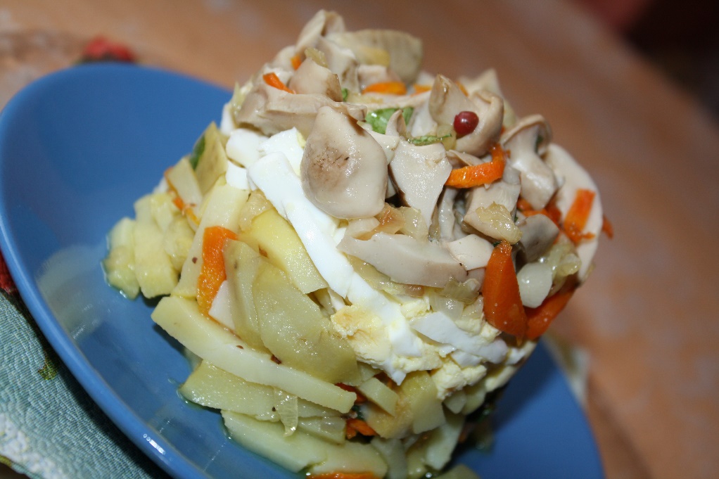 Закуска из картофеля и соленых грибов
