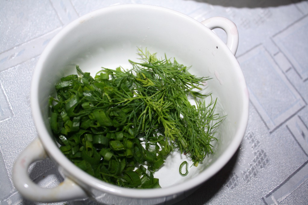 Кроме того, для подачи блюда: 40-50 гр сливочного масла, 1 столовая ложка рубленой зелени укропа, около 200 гр свежих овощей, 150-200 гр густой сметаны.