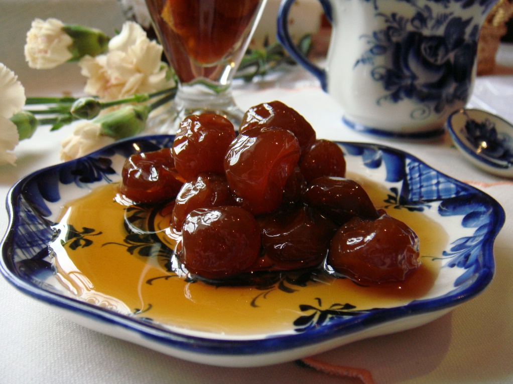 Варенье из вишни или черешни можно приготовить из ягод с косточками или без косточек. Ягоды, предназначенные для приготовления варенья с косточками, предварительно следует бланшировать 1 минуту. Варенье с косточками со временем приобретает миндальный вкус и запах, может накопить синильную кислоту, поэтому такое варенье хранить долго нельзя.
