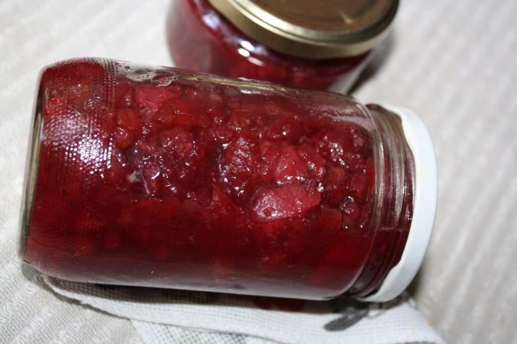 Готовый горячий джем расфасовать в чистые, сухие баночки, укупорить крышками, перевернуть на крышки и так остудить. Или банки после фасовки не укупоривать, а джем остудить под полотенцем. Открытые банки с джемом дополнительно выдержать около суток при комнатной температуре (на поверхности джема должна образоваться корочка), затем укупорить и хранить в прохладном месте.
