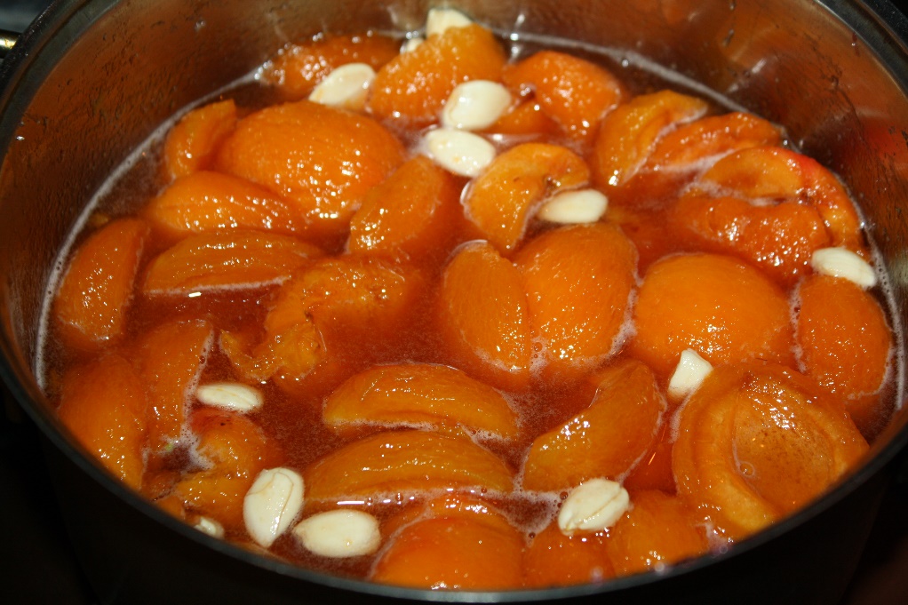 Сотейник с абрикосами поставить на огонь и, периодически перемешивая содержимое, довести до кипения.