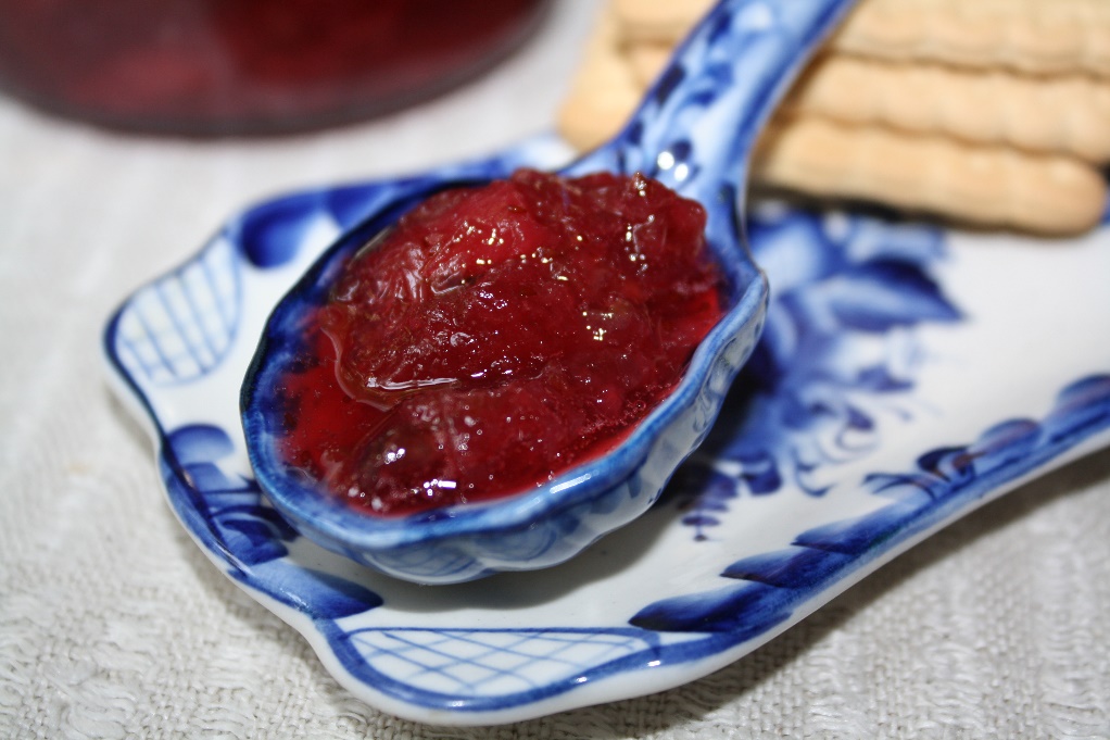 800 гр клюквы, 300 гр сахара, 100 гр желирующего сахара с пектином 1:1, 50-70 мл коньяка.