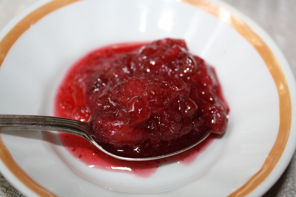 По 300 гр брусники и яблок, 150 гр груш, 100 гр сахара, 50 гр желирующего сахара, 100 мл красного виноградного вина, ¼ небольшого лимона, кусочек корицы, 1 неочищенный плод кардамона, щепотка зерен ванили.