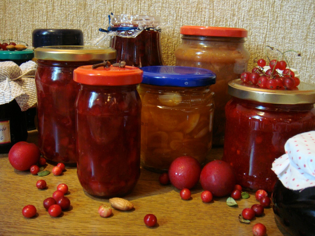 Варить джем окончательно на медленном огне до загустения, но не более 15-20 минут. Джем расфасовать в подготовленные банки и сразу укупорить. Далее хранить в прохладном месте или в квартирной кладовке, вдали от источников тепла и света.