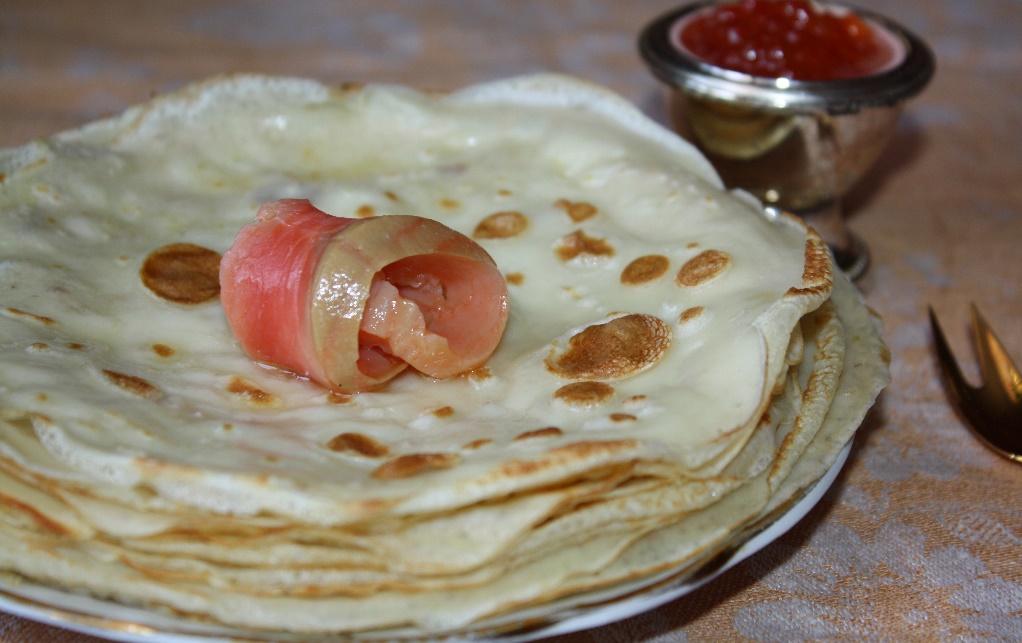Масленица– христианский праздник, длящийся семь дней. Заканчивается Масленица – начинается Великий пост, а затем – Светлое Христово Воскресение, Пасха. По христианскому Канону последние семь дней перед Великим постом верующие в пищу мясо не употребляют. Но праздничные масленичные блины можно готовить на скоромных продуктах – молоке, кефире, твороге и яйцах, а подавать с рыбой, морепродуктами, сметаной, сыром, маслом и т.д.